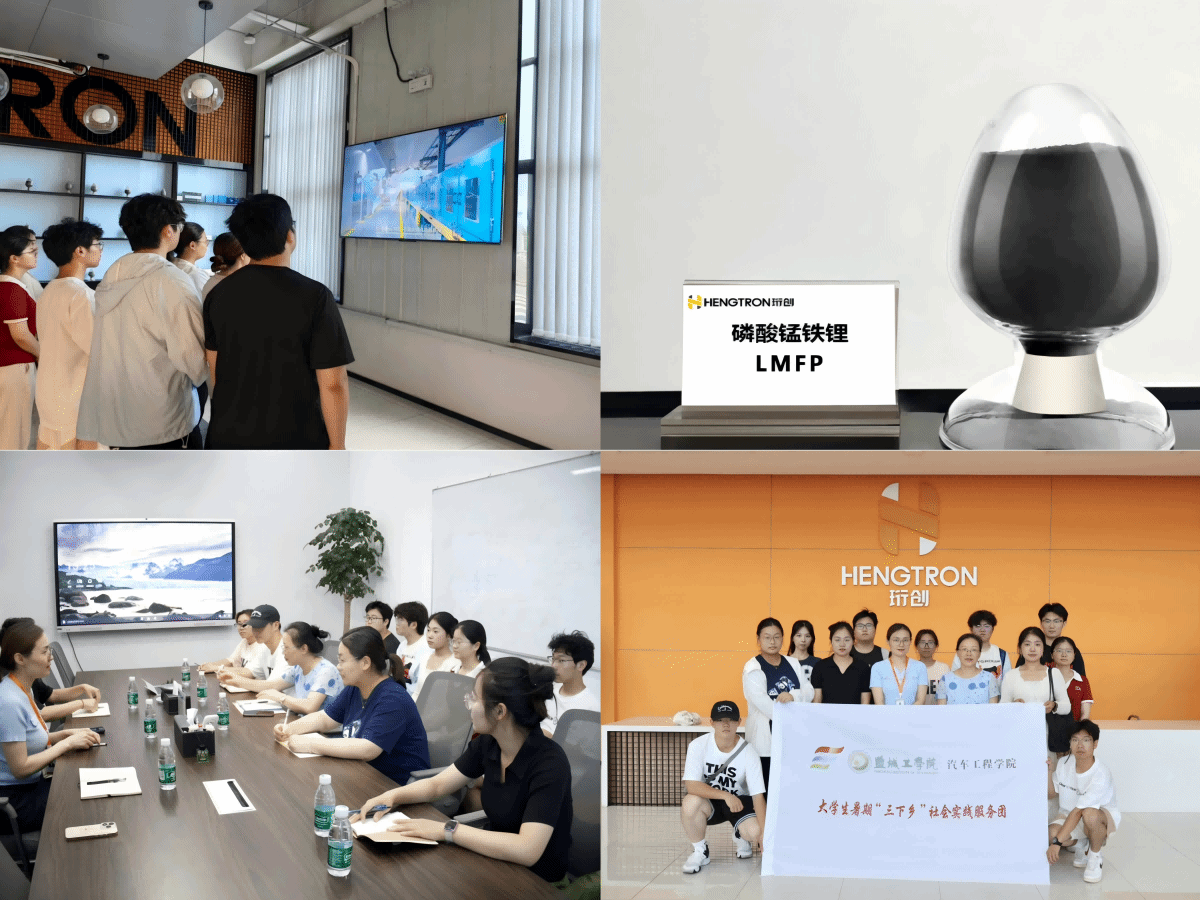 随后,讲解员深度解析 LMFP 材料:这种黑色粉末状材料,兼具良好化学稳定性、热稳定性及高能量密度,相较磷酸铁锂优势显著、市场潜力大。“没想到平凡粉末有这么大价值!” 团队成员纷纷感慨。
