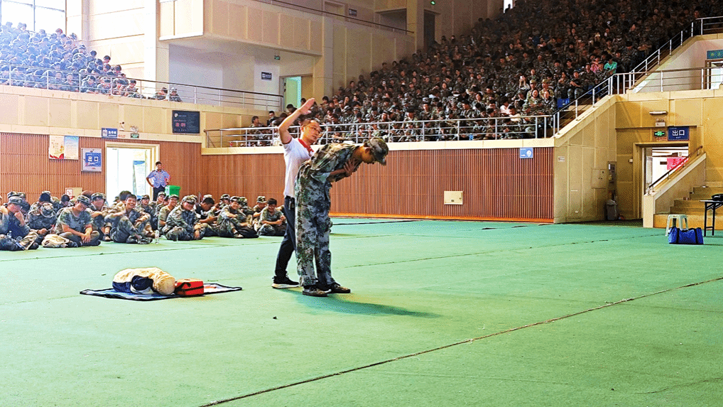 培训现场秩序井然,盐城市红十字会医护人员结合近年来校园常见突发场景,以“理论+实操”的形式,让急救知识变得可学、可用。在理论讲解环节,医护人员聚焦学生日常学习生活中的安全隐患,详细解读了运动中扭伤、挫伤、骨折等损伤的识别方法与应急处理步骤,以及常见的气道异物梗阻、突发心脏骤停等紧急情况,系统讲解了自救与互救的核心要点,特别强调了自动体外除颤仪(AED)在突发心脏骤停急救中的关键作用,通过真实案例分析,让新生深刻认识到掌握急救技能的重要性。在技能实操环节,医护人员借助高仿真人体模型和模拟AED设备,用通俗易懂的语言拆解关键急救技能流程,在心肺复苏教学中,从胸外按压的深度、频率,到开放气道的“仰头提颏法”,再到人工呼吸的吹气时长与力度,每一个细节都反复演示;在AED实操演练中,指导新生依次完成“开机→粘贴电极片→分析心律→听从设备语音提示除颤(若需要)→除颤后继续心肺复苏”的操作步骤,针对新生操作中出现的电极片粘贴错位、未等待设备心律分析就盲目操作等问题及时纠正;在海姆立克急救法教学中,分别针对成人、儿童不同群体,演示站姿与坐姿救助动作,让新生清晰掌握不同场景下的操作差异。现场新生积极参与互动,营造了“学急救、懂急救、会急救”的浓厚氛围。