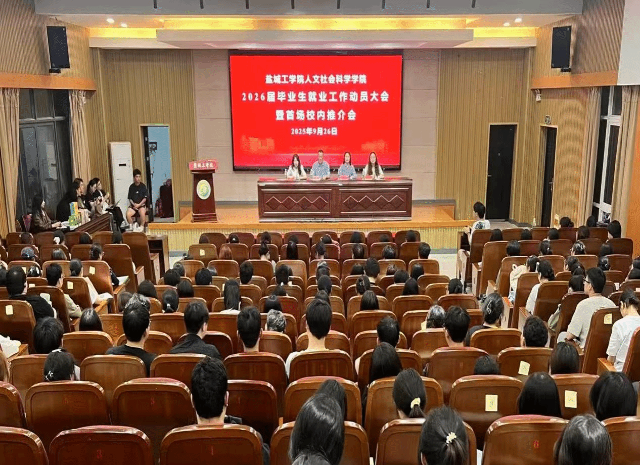 为提升2026届毕业生就业竞争力,激发毕业生就业积极性和主动性,推动毕业生实现高质量充分就业,9月26日晚,人文学院在南校区机械馆报告厅举办2026届毕业生就业工作动员大会暨首场校内推介会。学院党总支书记何登溢、党总支副书记姚爱华、学工办主任魏语婷、团委副书记乐珮珮,毕业班辅导员及全体2026届毕业生参加大会。