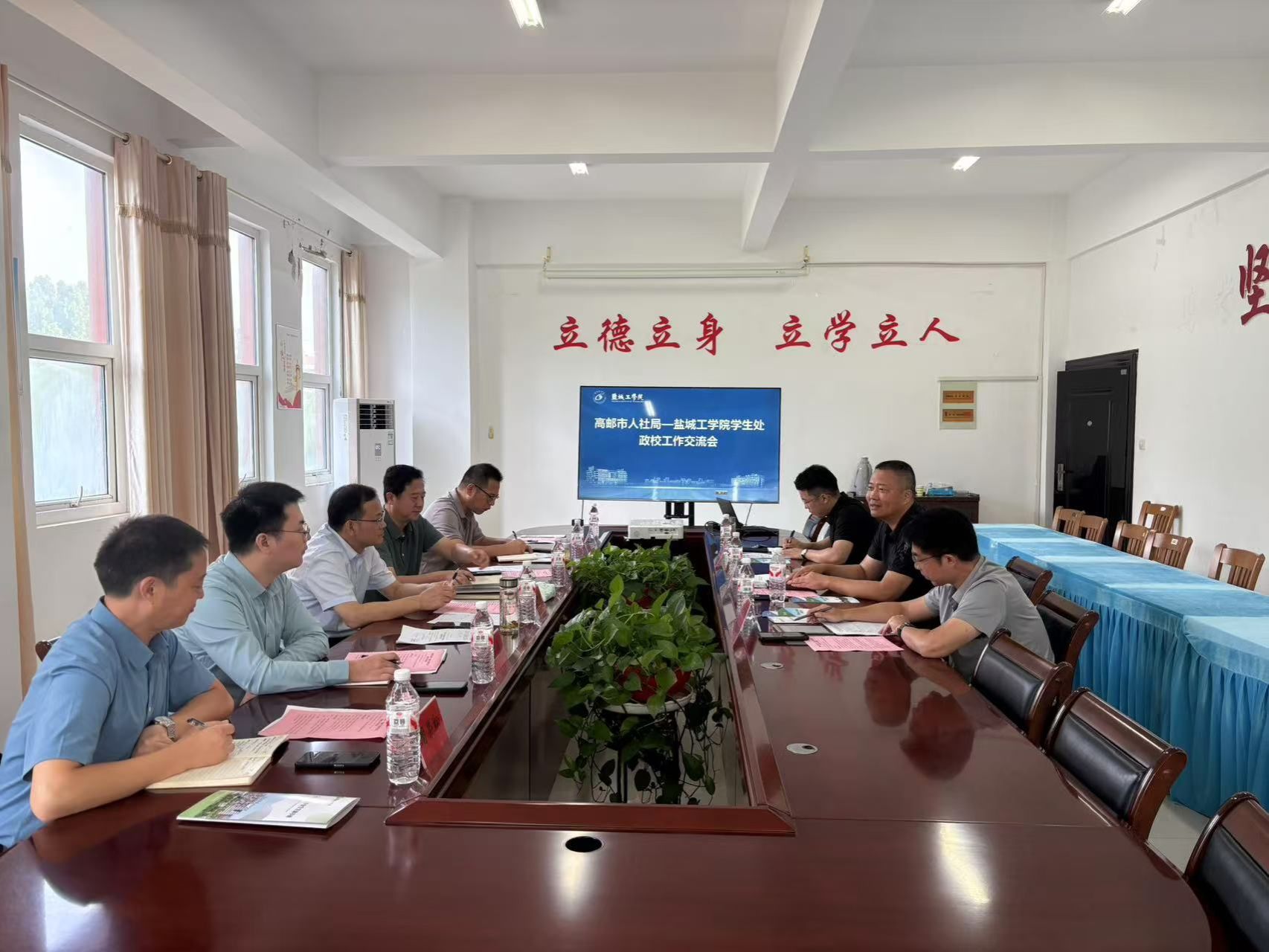 为进一步深化政校合作、校企合作,10月10日上午,高邮市人力资源和社会保障局党组书记、局长李长太,党组成员、副局长姜庆杰一行6人来校学生处调研交流政校合作相关事宜。学生处处长、招生与就业创业指导处处长杨汉华,学生处副处长、招生与就业创业指导处副处长阳韬热情接待,就业指导中心相关同志参加活动。