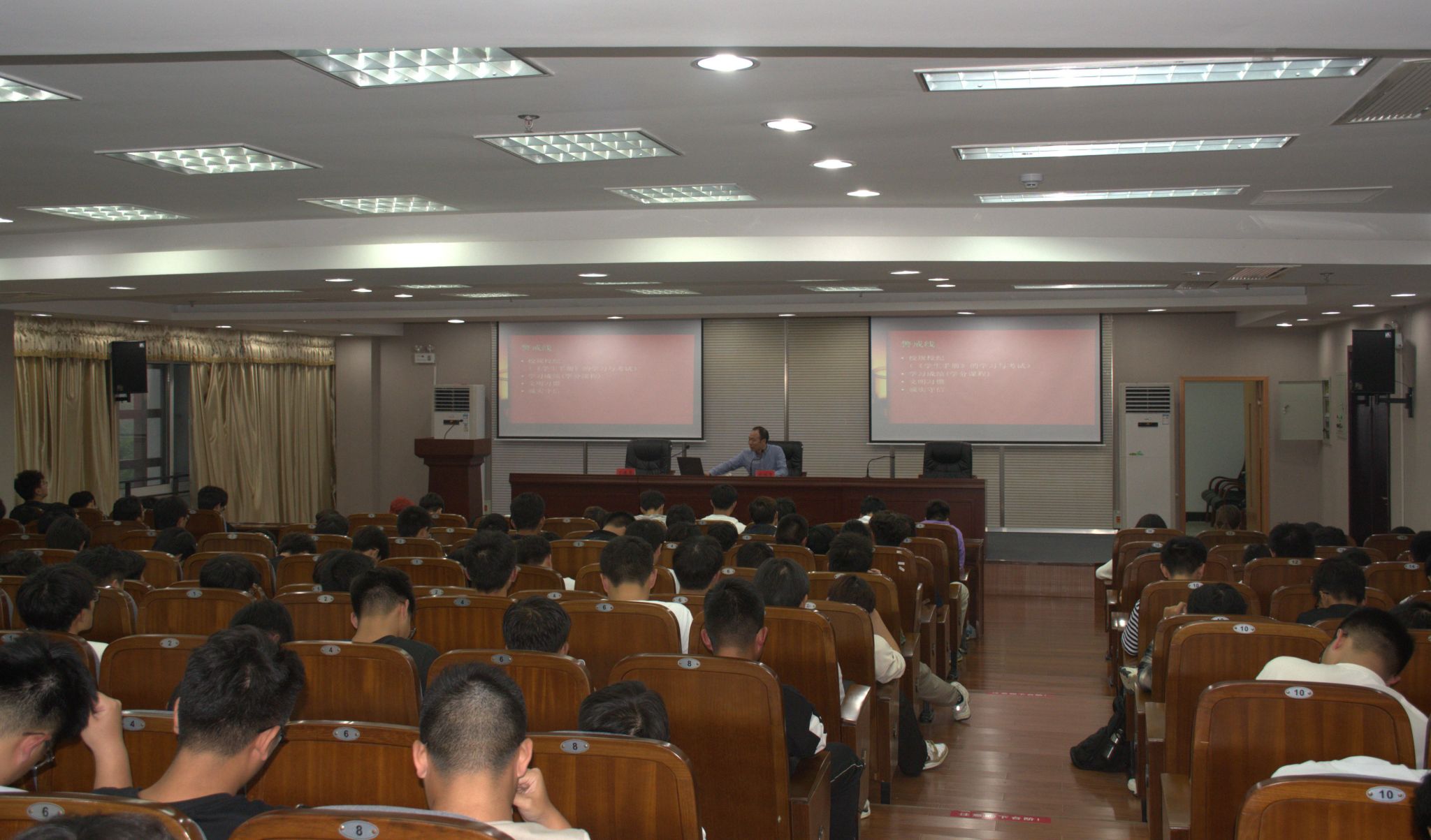 为帮助2025级新生加深专业了解、明确发展方向,提升对大学生活与学习的认知,10月15日下午,汽车工程学院在南校区图书馆报告厅举办2025级新生职业生涯规划教育讲座,人事处处长周临震主讲,学院党总支副书记丁德惠主持,2025级新生参加。