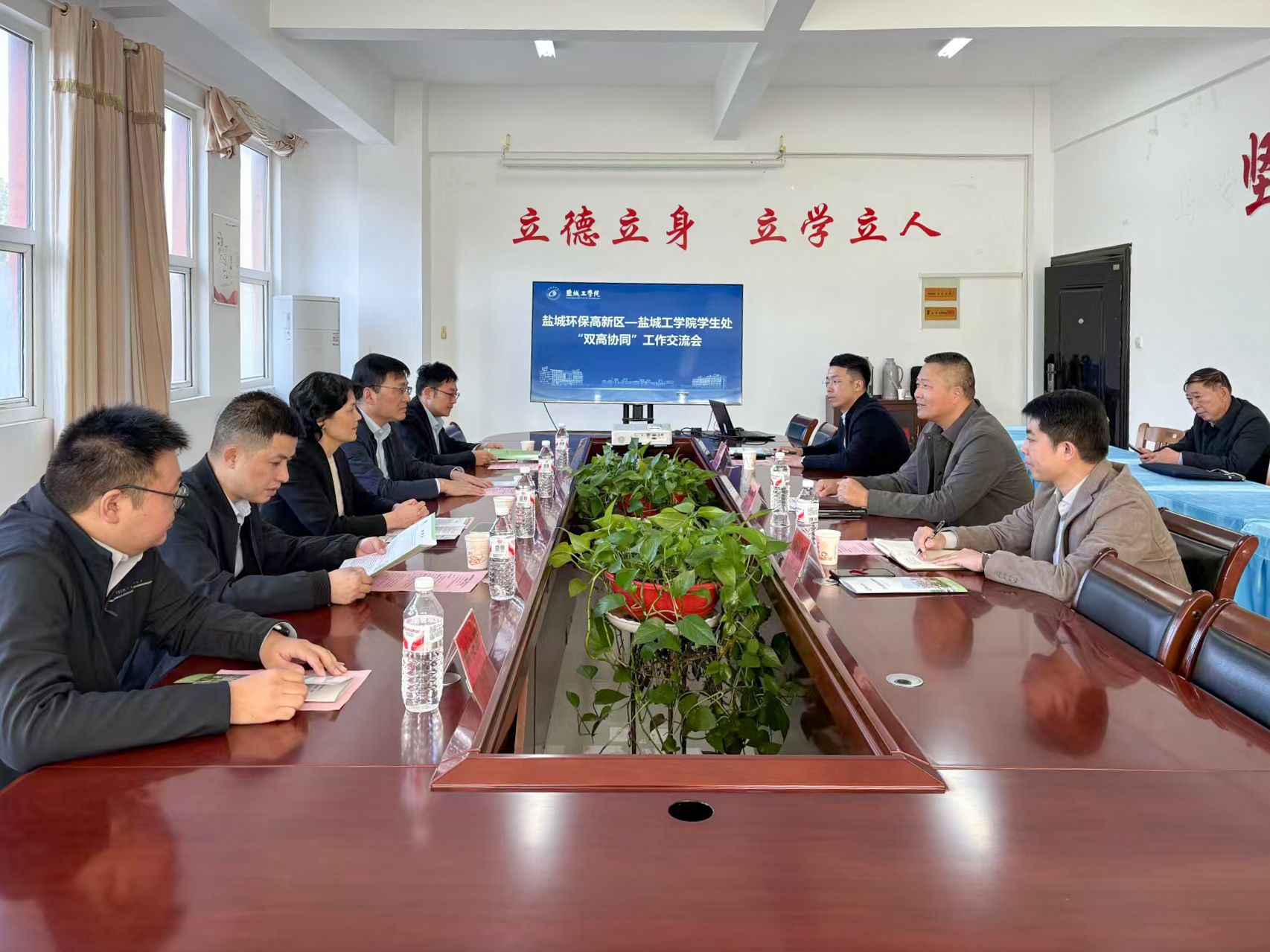 杨汉华首先对马梅、朱东升一行的到来表示热烈欢迎,并围绕贝博“双高协同”中的大学生就业工作整体规划和阶段进展作了详尽介绍。他表示“双高协同”是校地资源互补、共促发展的重要抓手。他希望以本次交流为契机,进一步深化与盐城环保高新区、亭湖区人社局的合作,推动大学生在环保高新区就业工作从“初步对接”向“深度落地”迈进,切实将合作共识转化为人才培养提质、毕业生就业增效的实际成果。