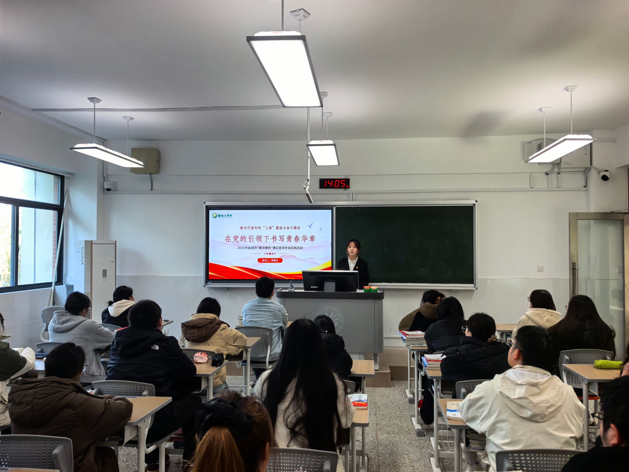 本次宣讲由土木工程学院学团联合会副主席、B土木233班黄馨怡同学主讲,她以《在党的引领下书写青春华章——新时代青年的“三观”塑造与奋斗路径》为题,结合自身学习实践经历与典型案例,通过鲜活的事例、生动的语言,阐释了新时代青年在民族复兴征程中应有的责任与担当,鼓励青年学子将个人理想融入国家发展大局,在专业学习中锤炼本领,在实践奉献中增长才干,以正确“三观”指引人生方向,用奋斗书写青春华章。