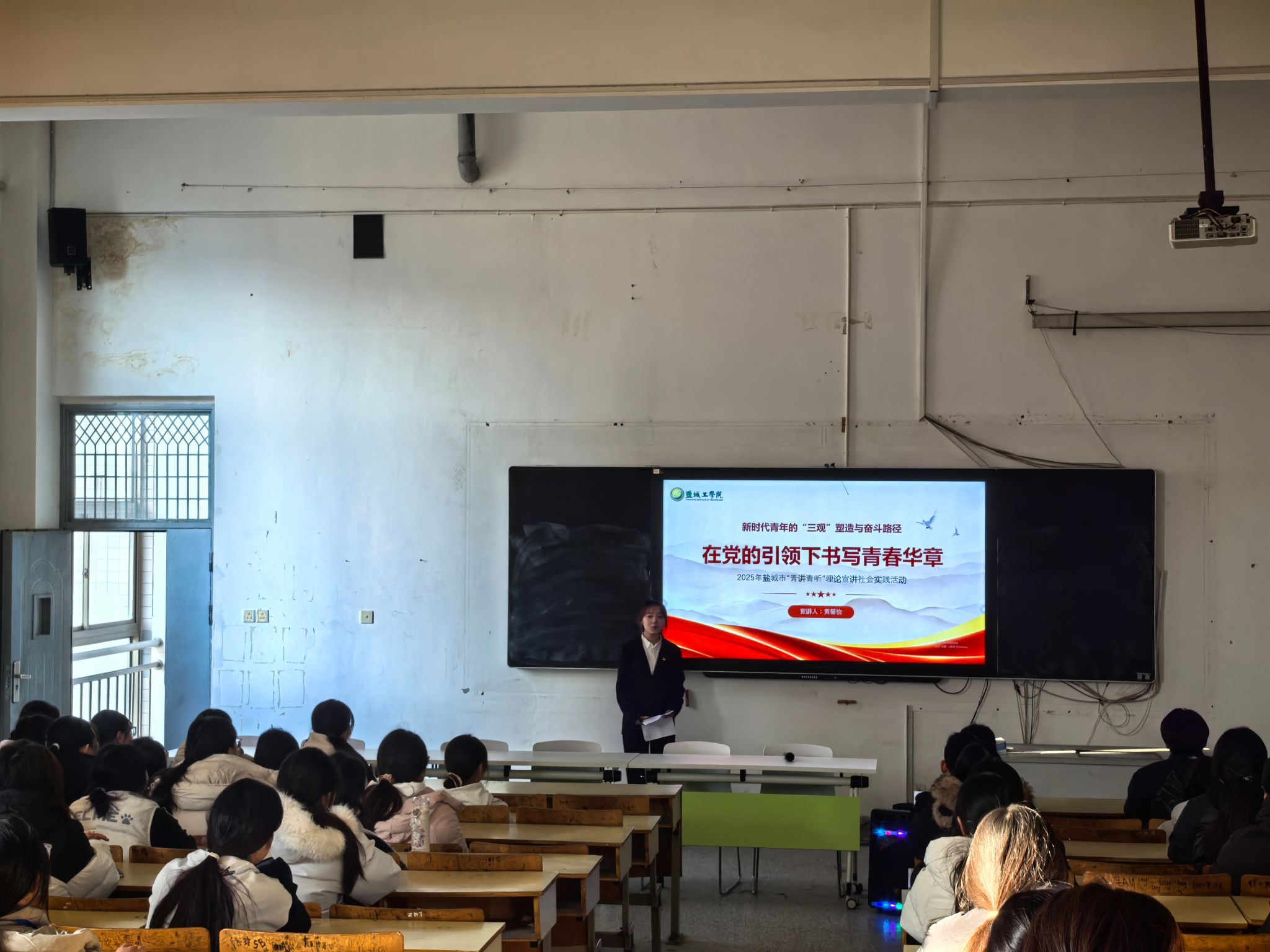 为强化青年学子思想引领,筑牢理想信念根基,11月19日下午,土木工程学院“青讲青听”理论宣讲团先后走进盐城幼儿师范高等专科学校建筑工程学院、盐城技师学院环境工程学院开展理论宣讲活动。盐城幼儿师范高等专科学校建筑工程学院L工管251班班主任宋思雨、全体学生,江苏省盐城技师学院环境工程学院团总支书记张才华、学生干部代表140余人分别参加活动。