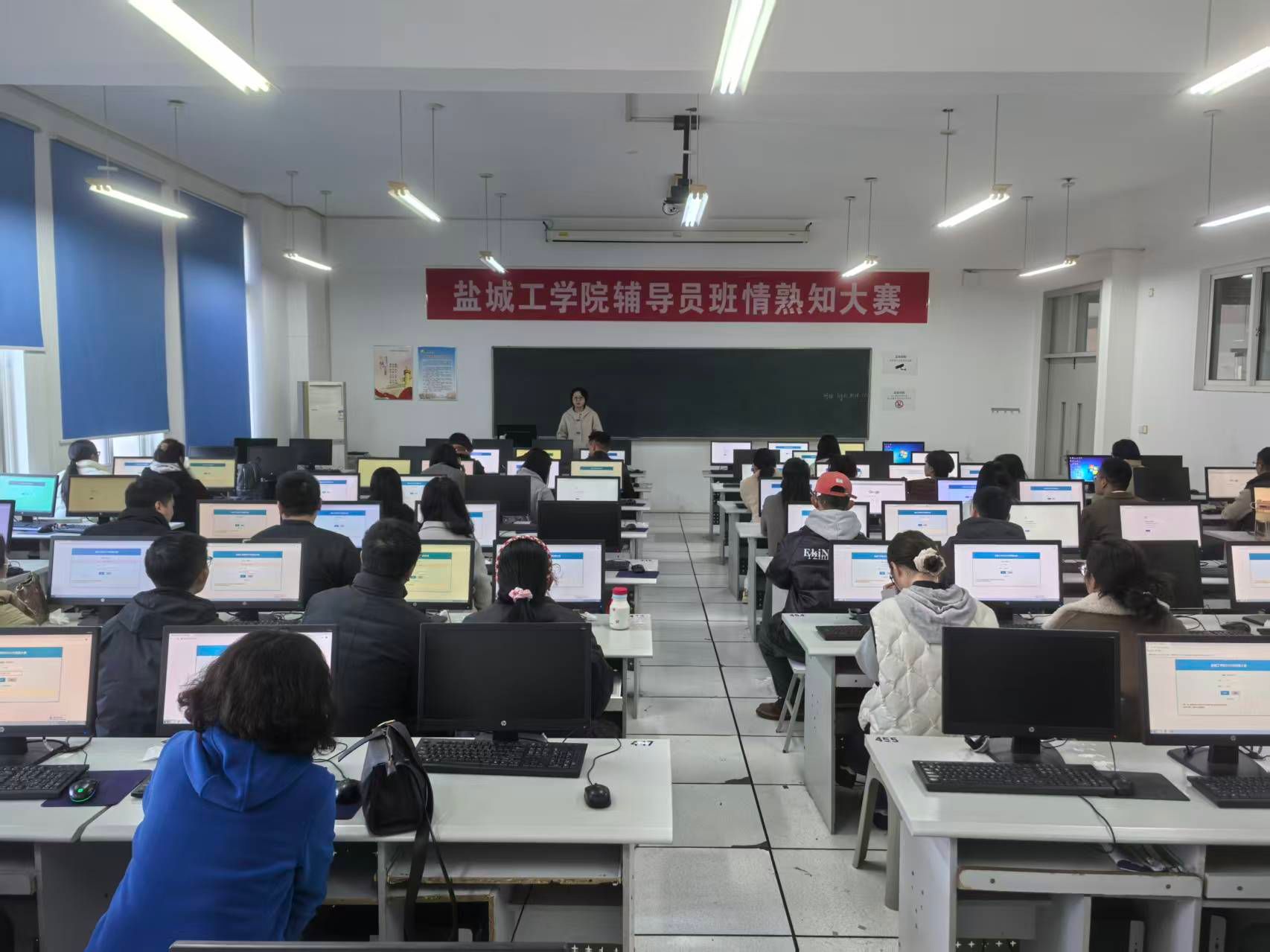 为全面提升辅导员队伍的专业素养与工作实效,检验辅导员日常工作的细致与深入程度,11月25日,在希望大道校区博学楼C313、306机房,学校举办首届辅导员班情熟知大赛,全体专职辅导员参加。学生处副处长马晓英、阳韬到场指导。