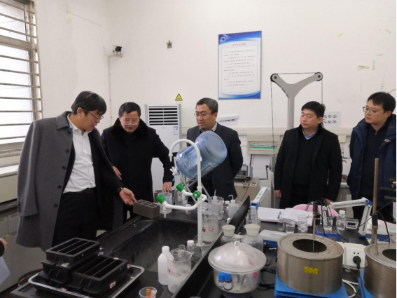 在江苏省新型环保重点实验室会议室召开的交流会上,姜瑞雨教授介绍了“揭榜挂帅”项目的研究思路,任务分工的完成情况等方面的内容。张忠伦详细询问了新型低碳水泥的制备过程、与现有水泥相比有何优势、水泥窑收集设备要求、CO2养护罐设备参数、碳化条件参数、低碳水泥产品方向等问题。双方围绕低碳水泥的工业化进程进行深入的交流与讨论。会上,双方一致肯定了新型低碳水泥具有广泛的应用前景,对国家双碳战略具有重要意义。随后参观了侯贵华教授的低碳环保研究实验室。侯贵华教授为张忠伦一行展示了多年来的研究产品,并介绍了新型低碳水泥烧成及碳化硬化性能。张忠伦详细询问了钢渣砖的压制设备、成型压力、碳化条件及其性能。