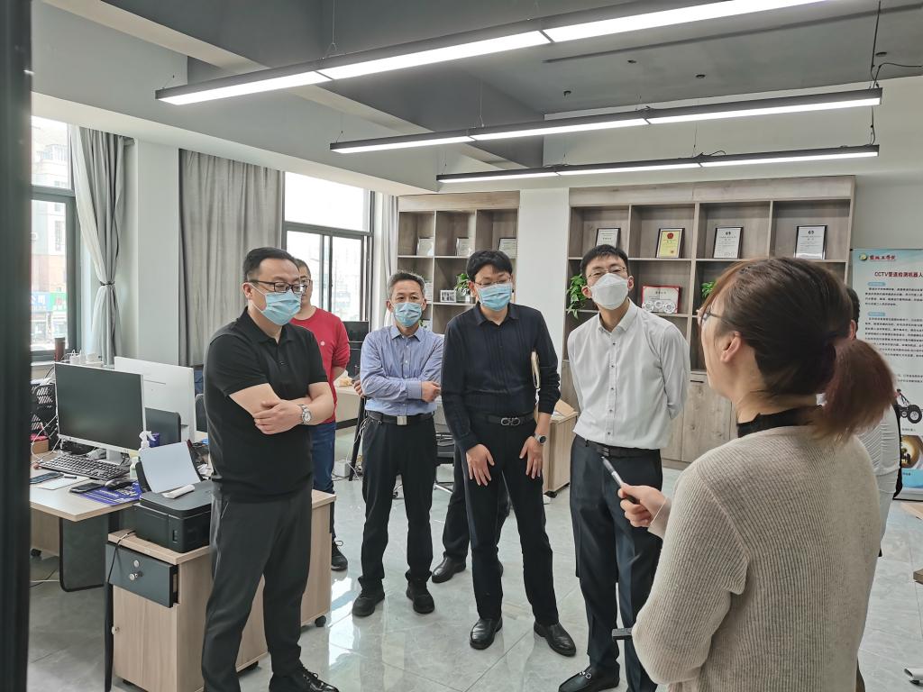 参观团一行参观了中心的一站式综合服务大厅、成果展示区,同时对瞰融云计算科技(盐城)有限公司、中技智能科技(盐城)有限公司等入驻企业进行了调研。