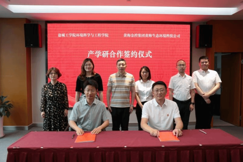 双方签订党建共建合作协议、产学研合作协议,环境学院授予江苏黄海生态环境科技有限公司就业实习基地铜牌。会前,环境学院一行还参观了企业实验室。