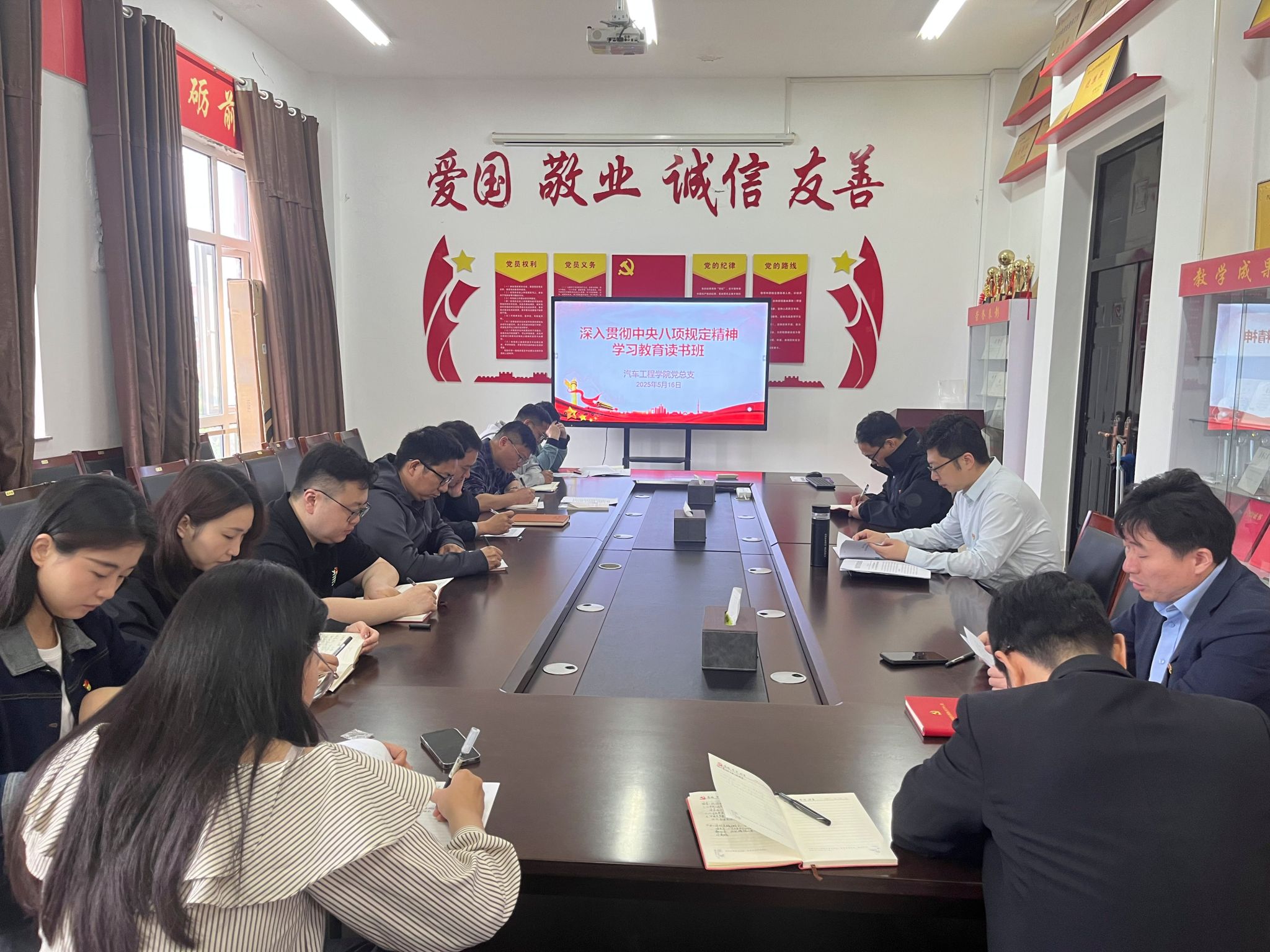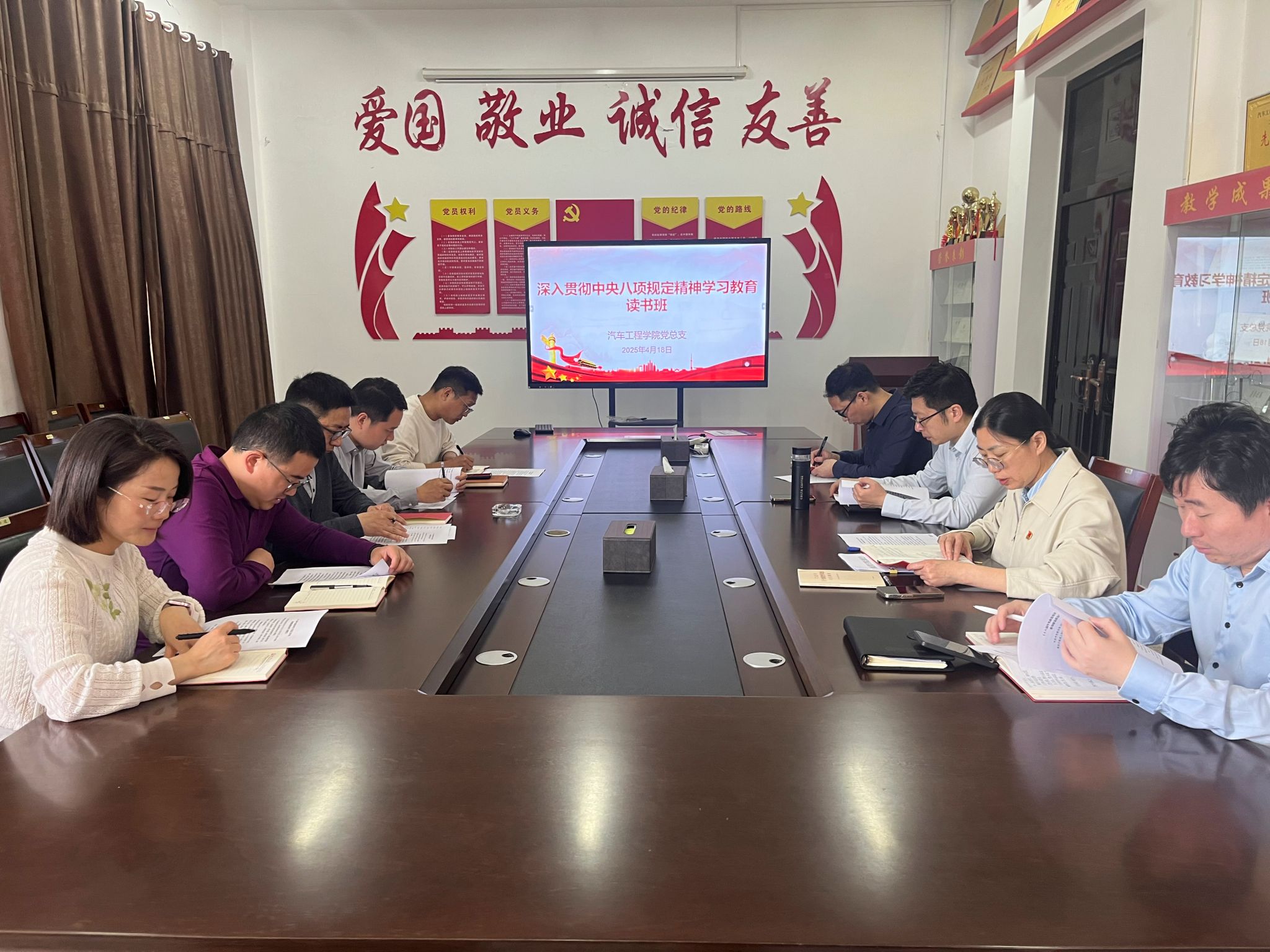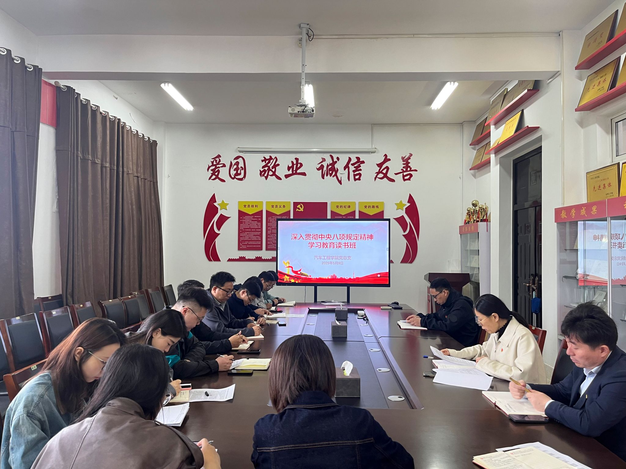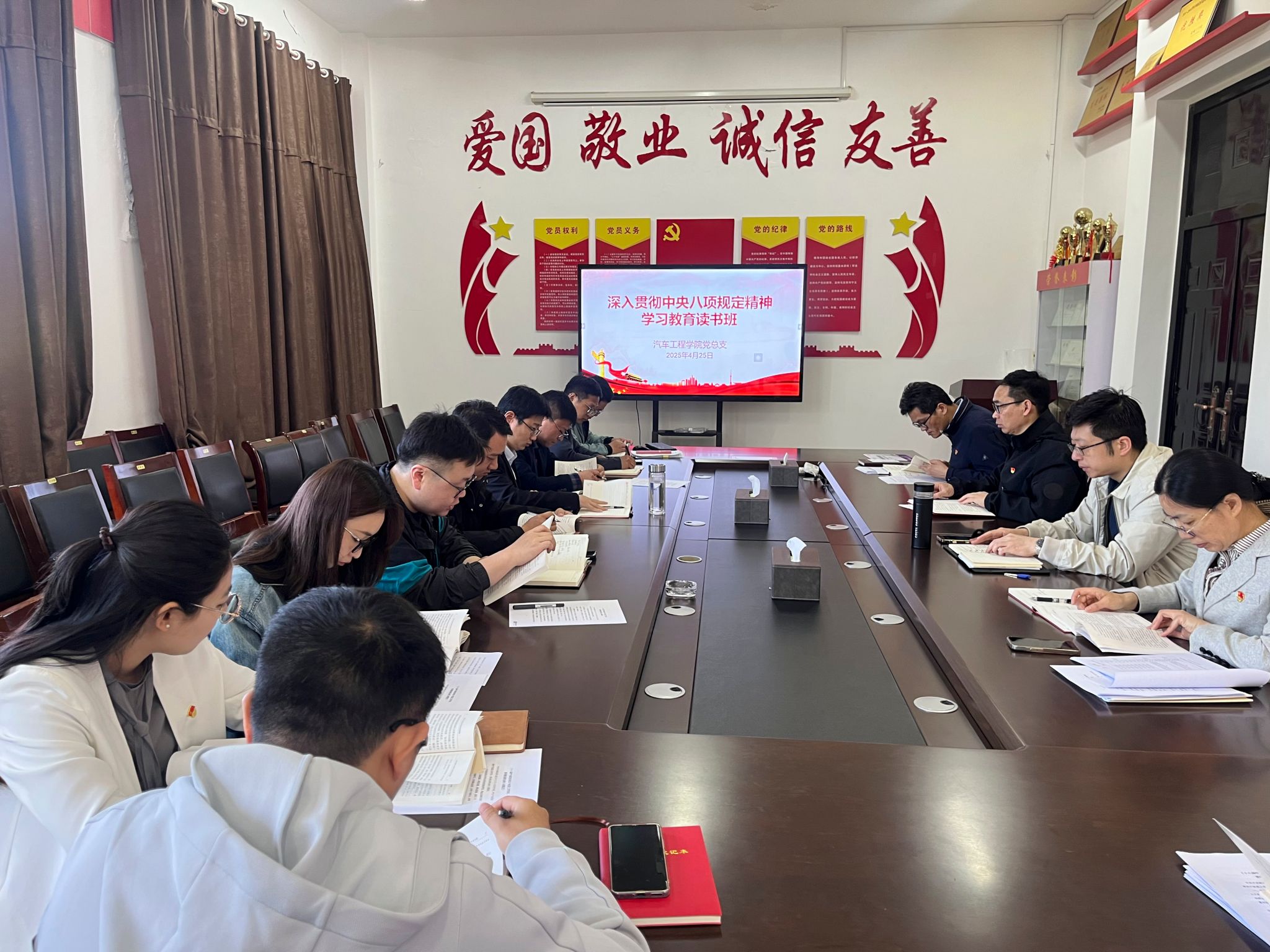 4月-5月,汽车工程学院在机械馆A323举办深入贯彻中央八项规定精神学习教育读书班。学院科级以上干部、党支部书记、专业系及中心主任参加学习。