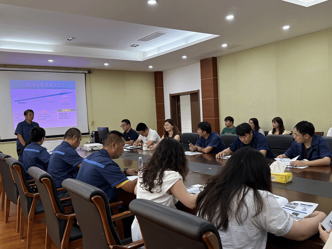 为进一步提升汛期高温天气盐城饮用水源地嗅味检测及风险防控能力,严防异味物质引发自来水舆情事件,8月12日下午,环境学院副院长李璇带领水环境与污染控制研究所副教授郭庆园、马卫星,赴盐城水务集团原水公司开展“饮用水嗅味检测及风险防控”专题培训。盐龙湖水源地、通榆河水源地15名一线水质化验员,以及“bb贝博艾弗森官方网站-盐城水务集团研究生工作站”在站8位研究生参加,培训由盐城水务集团原水公司生态科主任王玲主持。