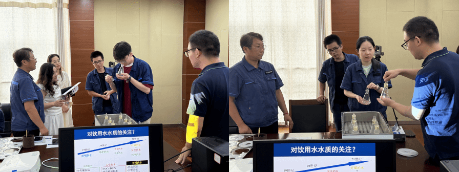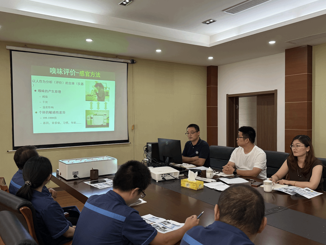 随后,培训进入水样辨识能力提升环节。使用配制的标准嗅味溶液,要求参训人员独立描述水样气味特征,并详细记录感知结果。为准确描述气味特征和强度,培训特别设置小组讨论环节,通过交流讨论达成对同种物质气味的共识描述。这一过程不仅有效提升了参训人员的嗅觉辨识规范性和一致性,还进一步强化了团队协作能力。