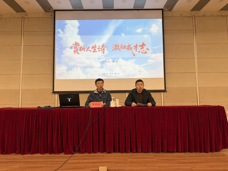 11月20日下午,环境学院在北校区化工楼报告厅举办专题报告会,邀请原校党委常委、副校长、校关工委银龄宣讲团专家董跃进教授,作题为《赏析人生诗,激励成才志》的专题报告。学院党委书记孟鑫主持,学工办主任沈丹,新生辅导员王翔、翟平及2025级全体新生参加。